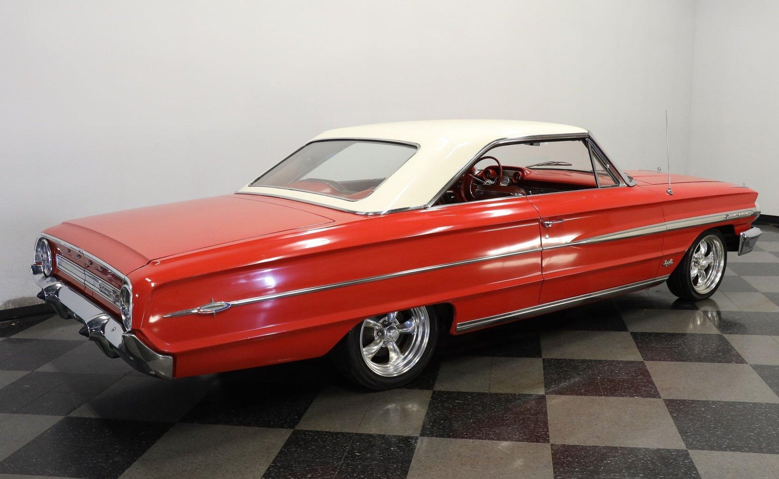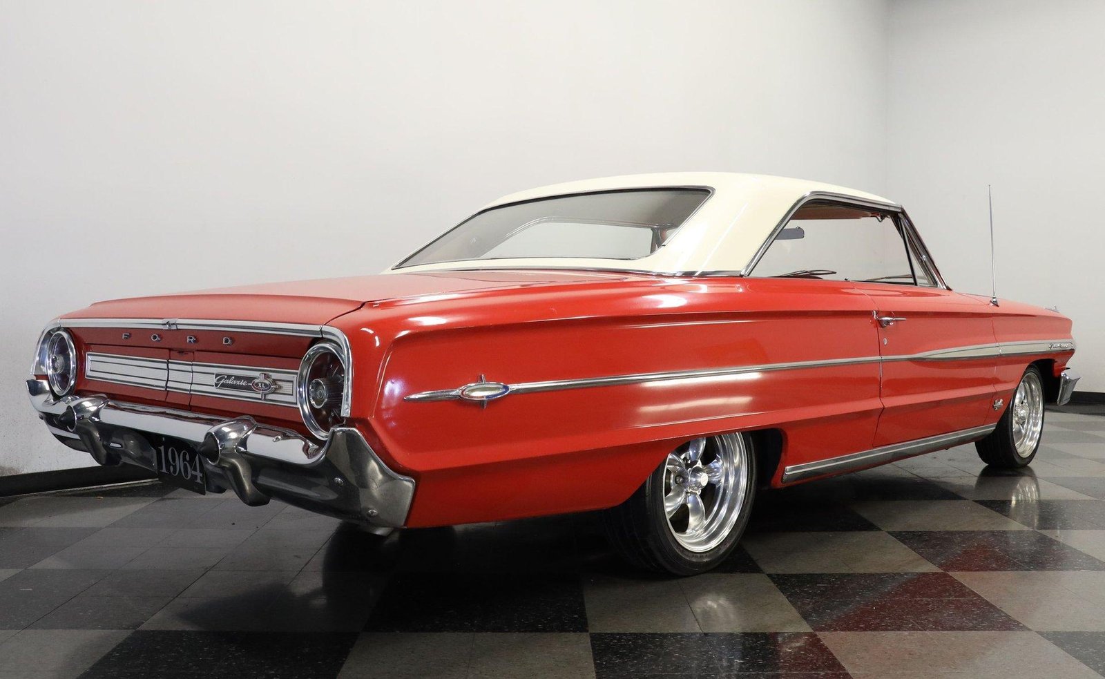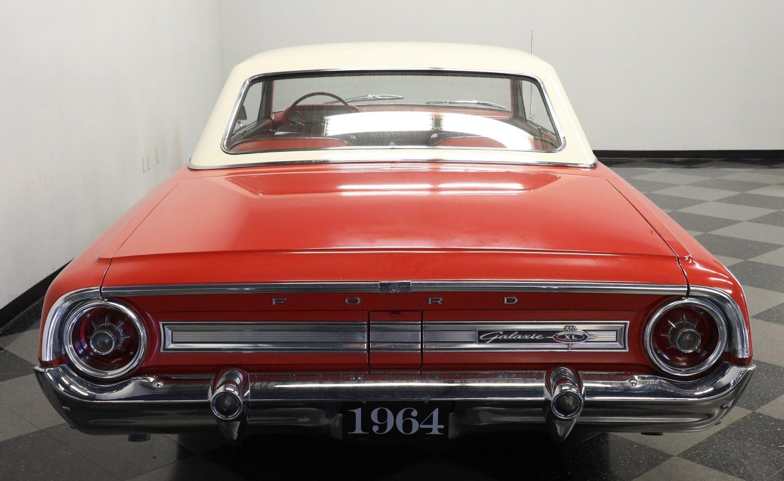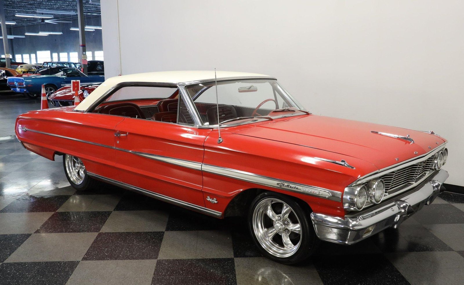A stunning 1964 Ford Galaxie 500XL Coupe finished in Rangoon Red with a contrasting Wimbledon White top — an original X-code car upgraded with a smooth 390 V8, C6 automatic, and elegant factory-correct styling.
