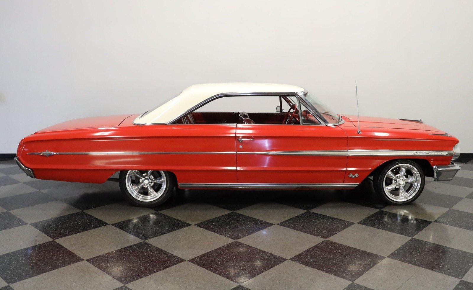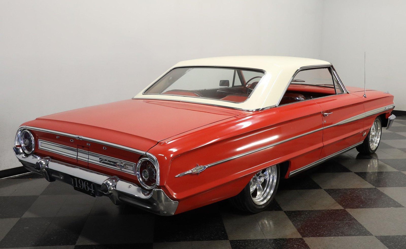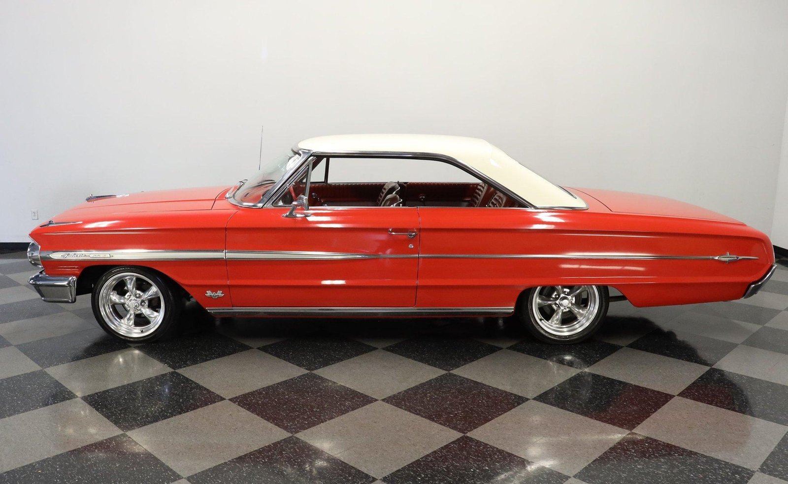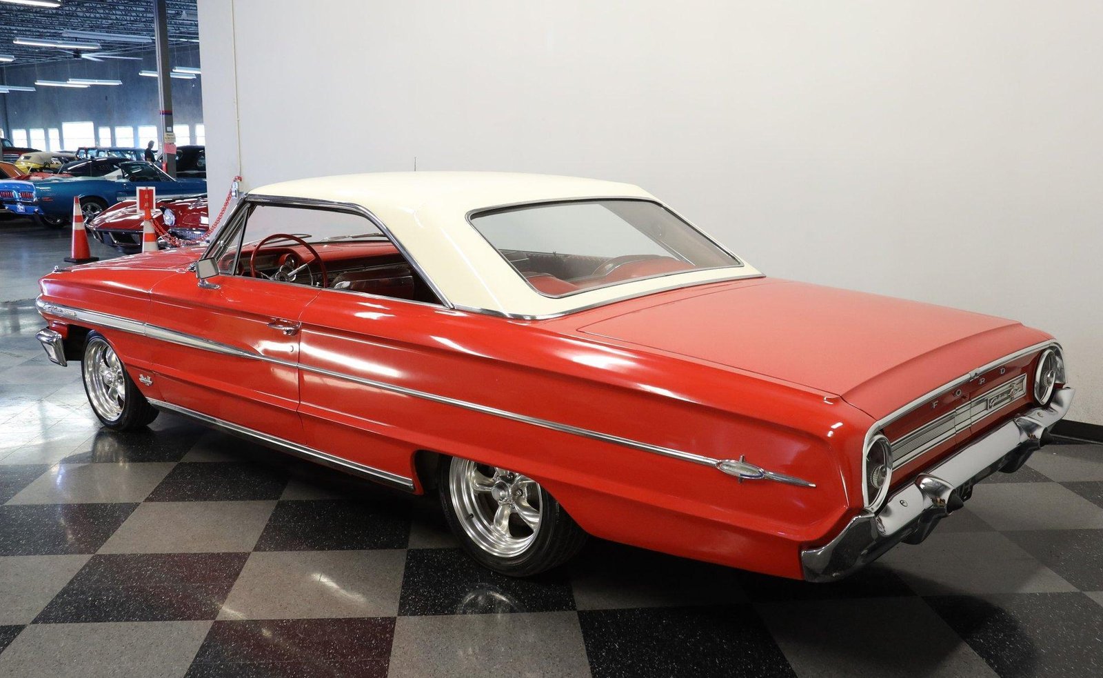 A stunning 1964 Ford Galaxie 500XL Coupe finished in Rangoon Red with a contrasting Wimbledon White top — an original X-code car upgraded with a smooth 390 V8, C6 automatic, and elegant factory-correct styling.