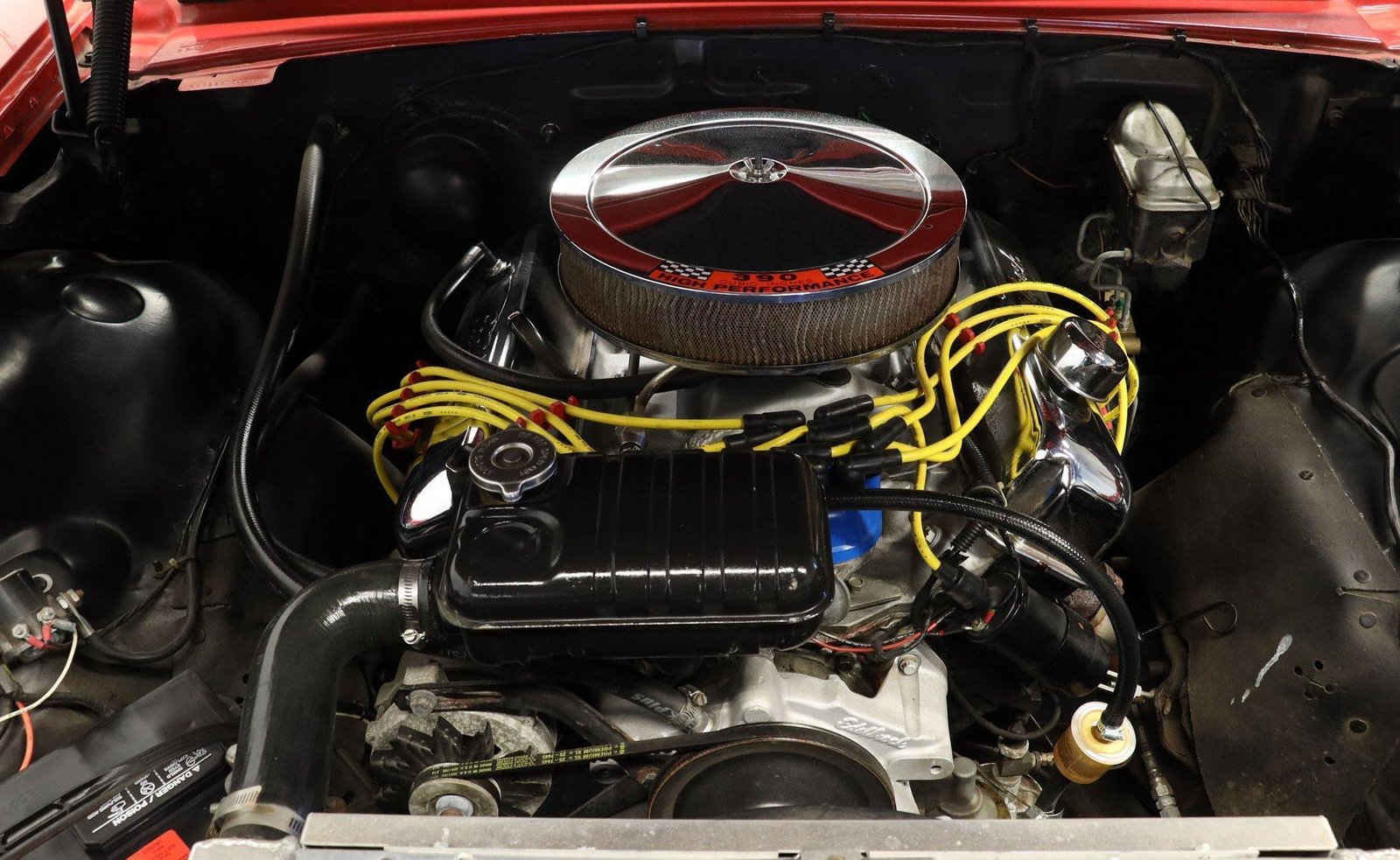 Exterior: Rangoon Red paint with Wimbledon White roof, factory fender skirts, bright trim, and included original XL wheel covers in the trunk. Clean underside and well-documented with service receipts.