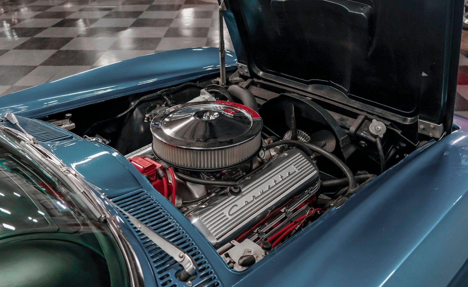 Engine & Drivetrain: 454 ci V8 with Holley carburetor, Edelbrock intake, HEI ignition, and 4-speed manual transmission powering the rear Corvette differential. Side pipes with baffled straight pipes deliver the signature C2 exhaust tone.