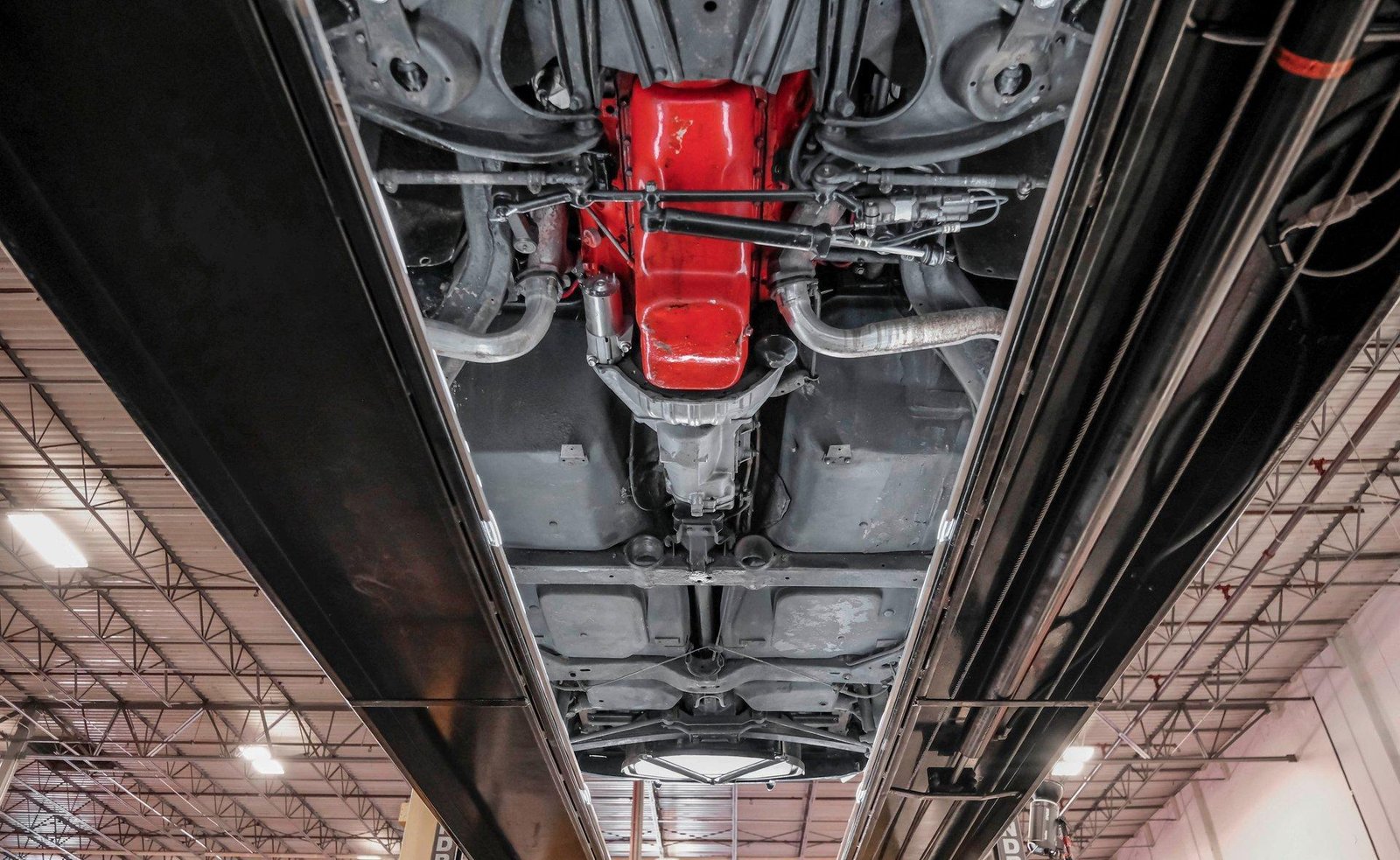 Mechanical: Power steering, four-wheel disc brakes, front coilovers with sway bar, and rear mono-leaf spring suspension. Chrome valve covers and polished aluminum components accent a detailed engine bay.