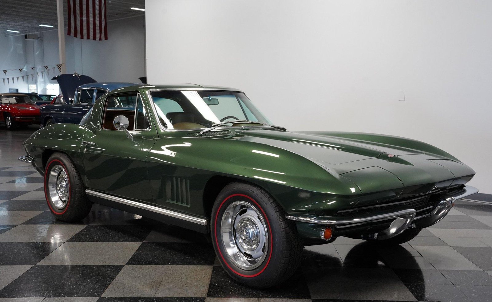 A beautifully finished 1967 Chevrolet Corvette Convertible, the final year of the C2 generation, presented in rare Goodwood Green over Saddle interior — numbers-matching and true to its factory configuration.