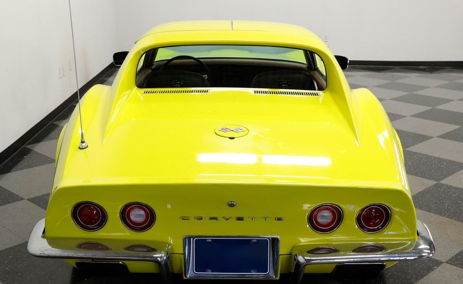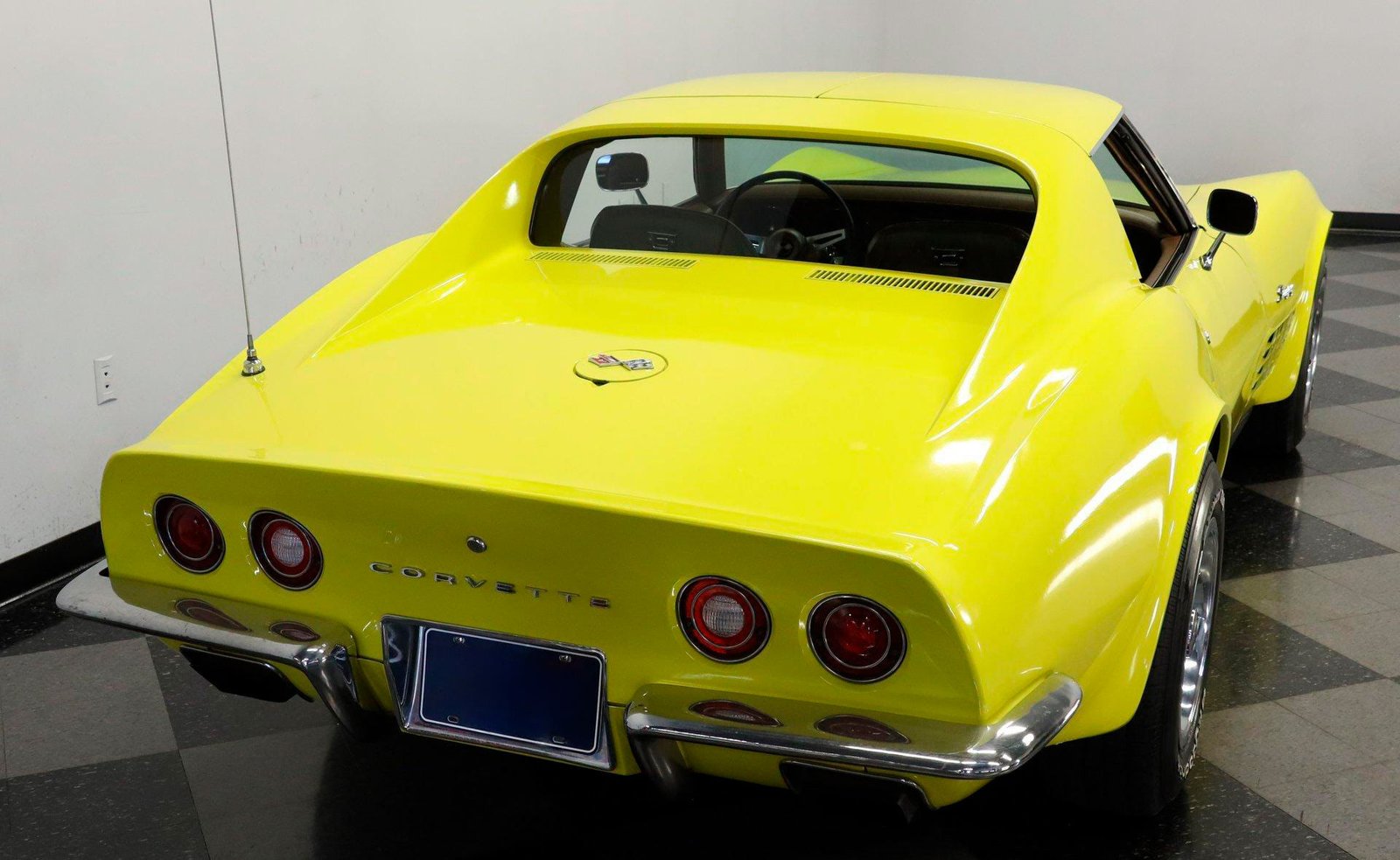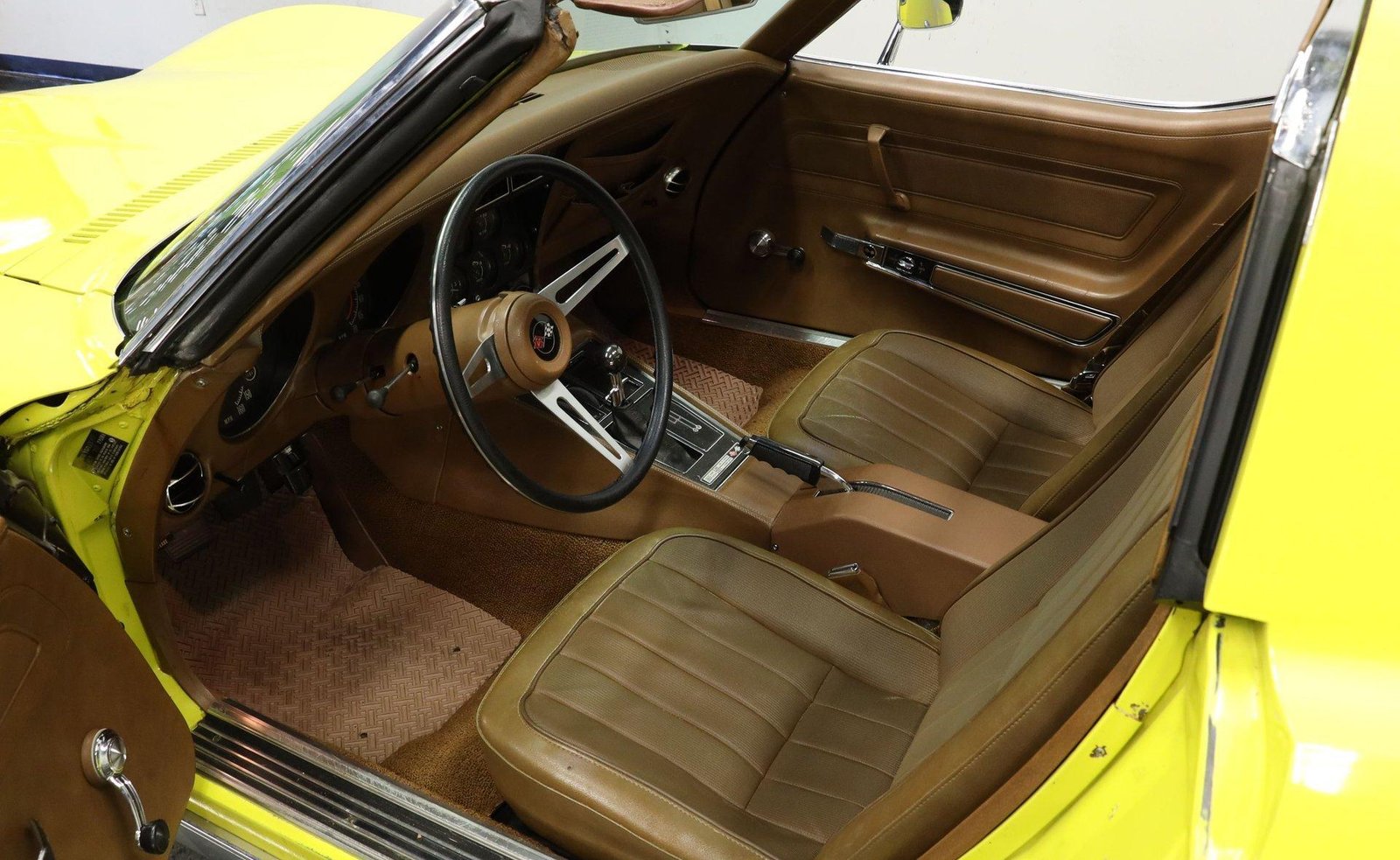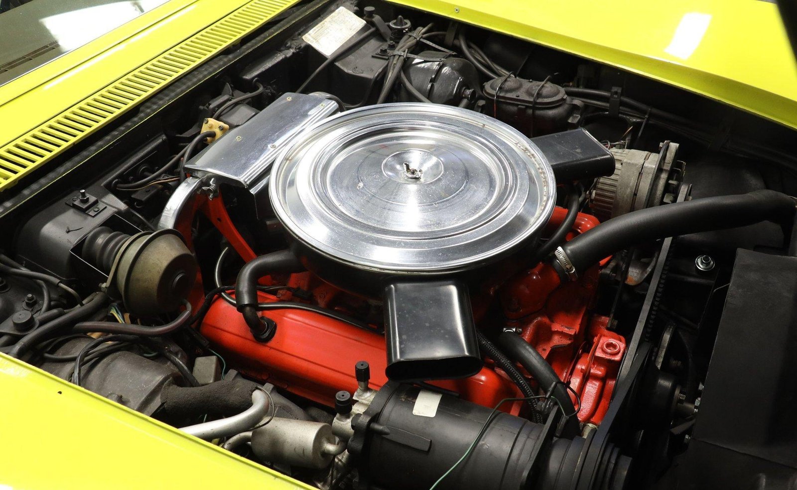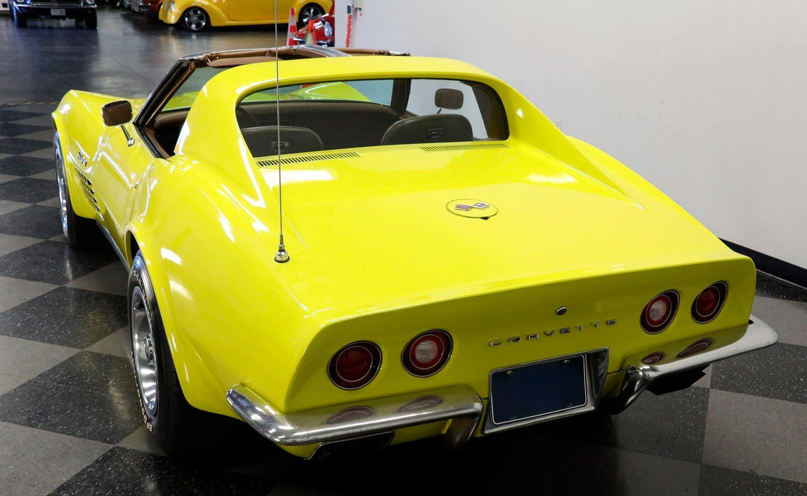A low-mileage 1972 Chevrolet Corvette Coupe, finished in factory Sunflower Yellow with T-tops, chrome bumpers, and matching-numbers 350 V8 paired to a Muncie 4-speed manual — a true survivor in striking condition.